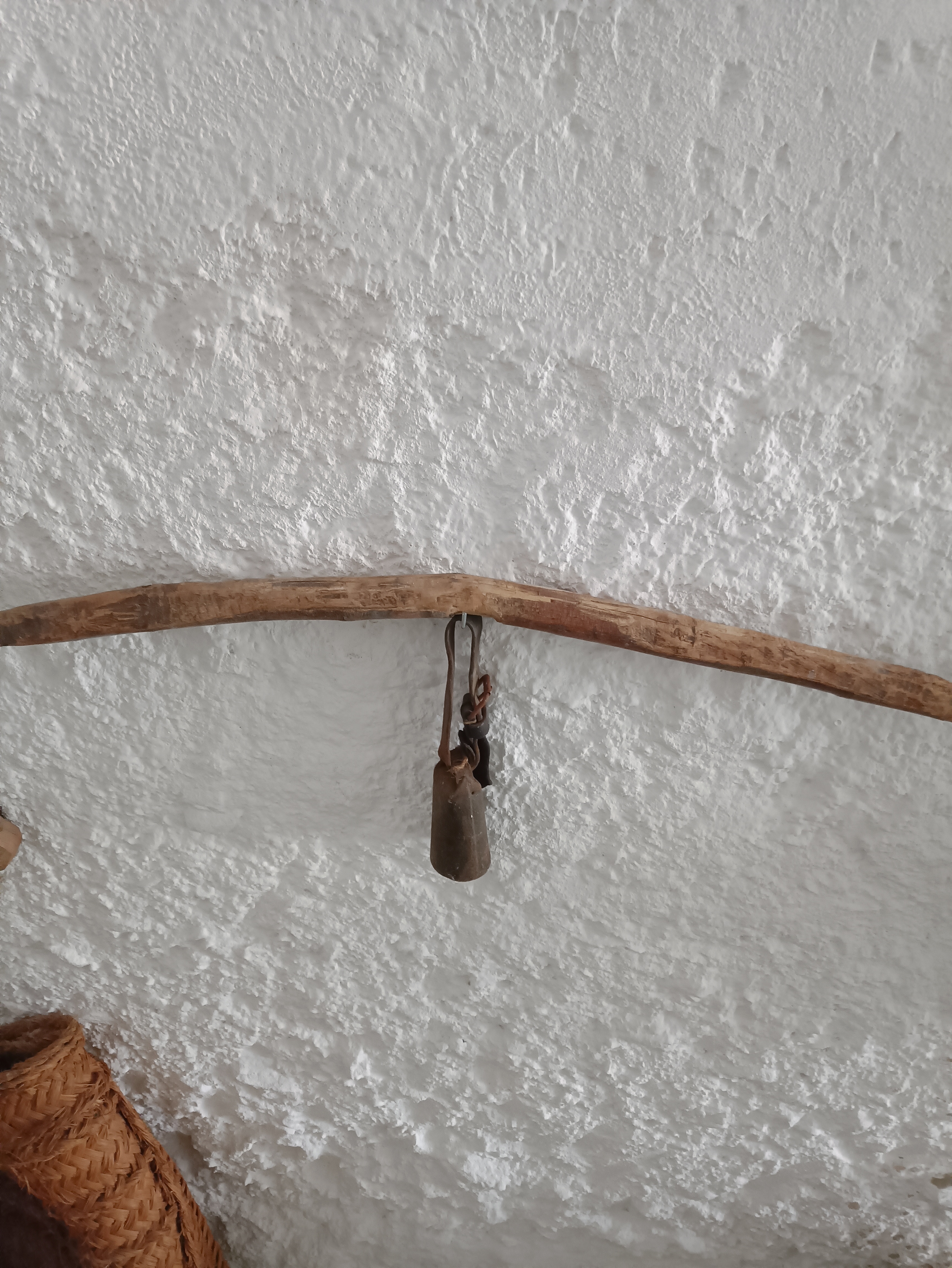 A cowbell is a metal bell, typically shaped like a truncated cone or slightly oval, that is hung around the necks of grazing animals, such as cows, sheep, or goats. Its primary purpose is to help shepherds locate and track their animals when they are scattered across the field or in areas with dense vegetation. The distinctive sound of the bell makes it easier to identify where the livestock are, especially in conditions like fog or poor visibility. It can also serve other functions, such as signaling the lead animal within a herd or even holding symbolic or traditional significance in certain cultures.